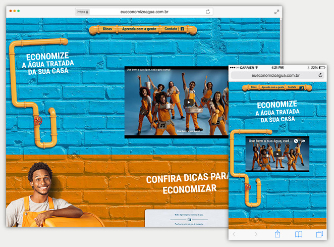 Website created by Rocha Comunicação for the campaign to prevent water wastage in Brasília, the Federal Capital.