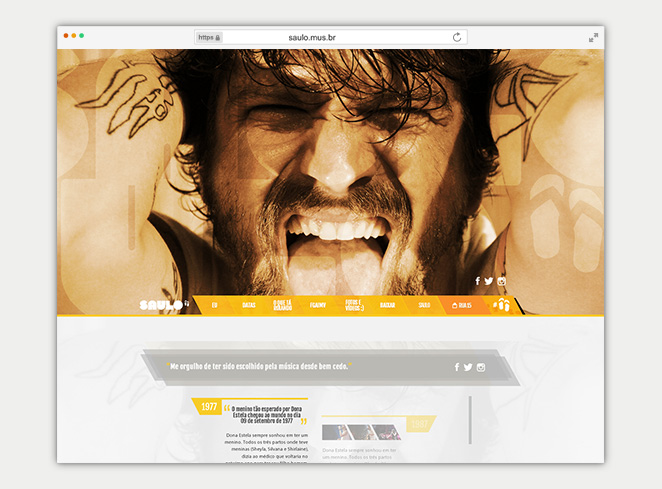 In my second job at Equilibra I was responsible to make the front end and implement the functionalities on the new website for the brazilian musician Saulo.